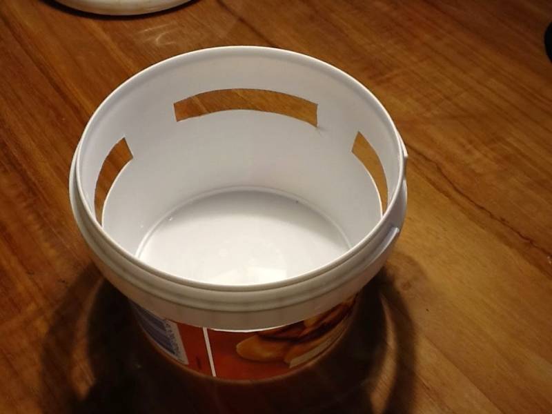 1. Snij rechthoekige gaten in het bakje vlak bij de bovenkant